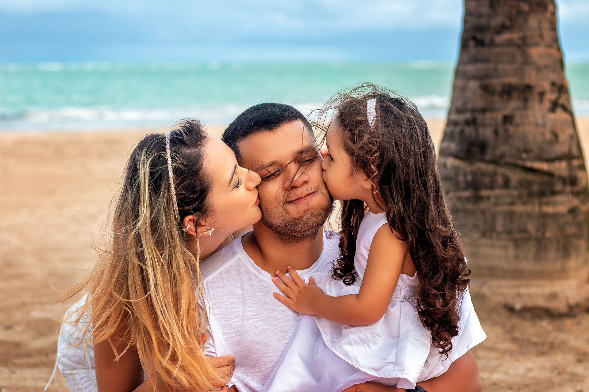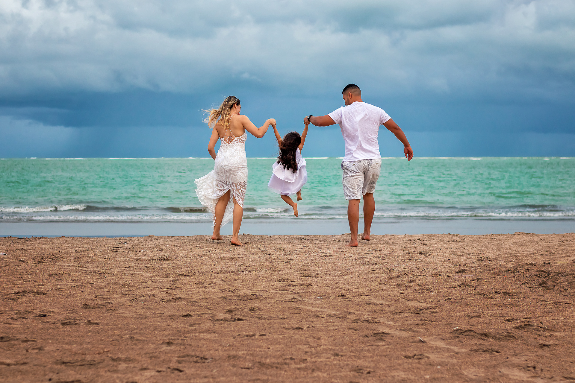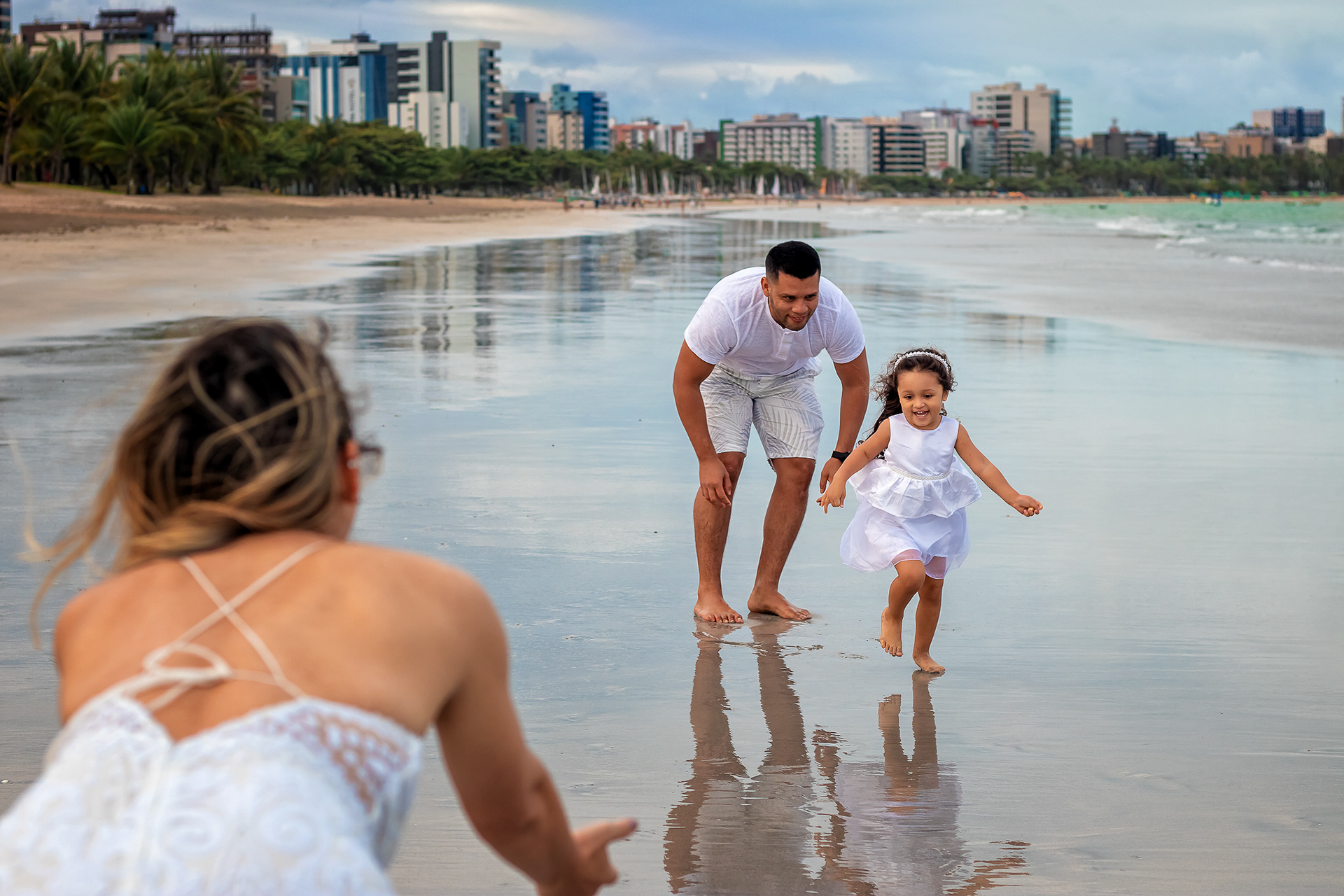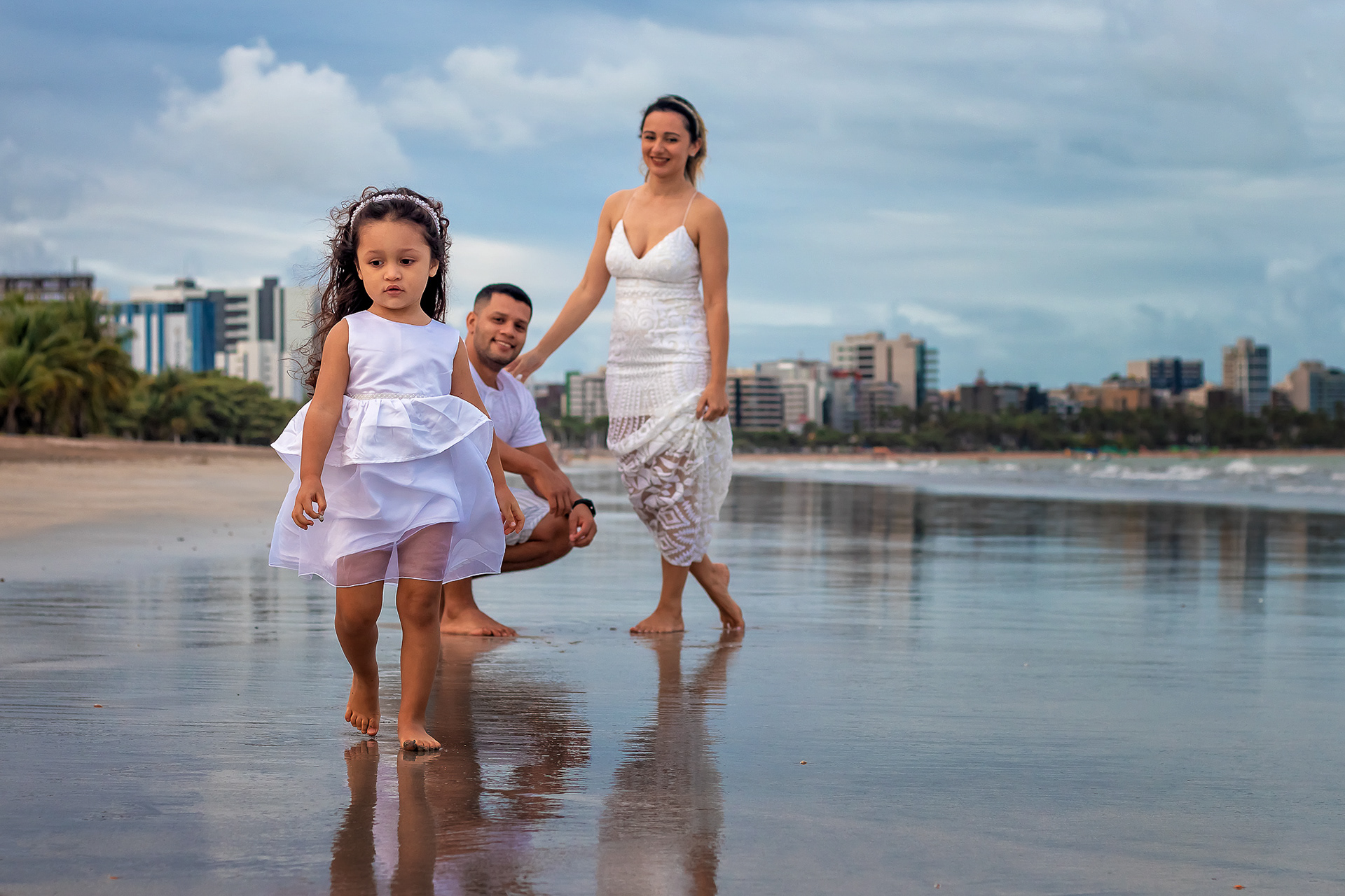 Ensaio fotográfico de família com piquenique romântico para comemorar os 10 anos de casado. Realizado na praia de Pajuçara, em Maceió/AL.