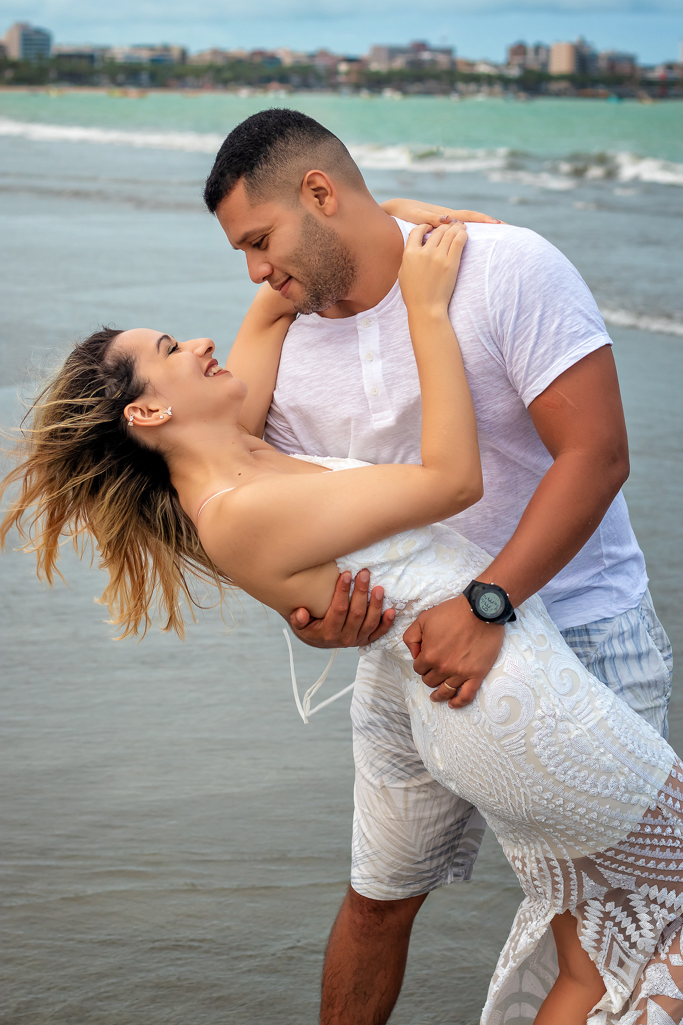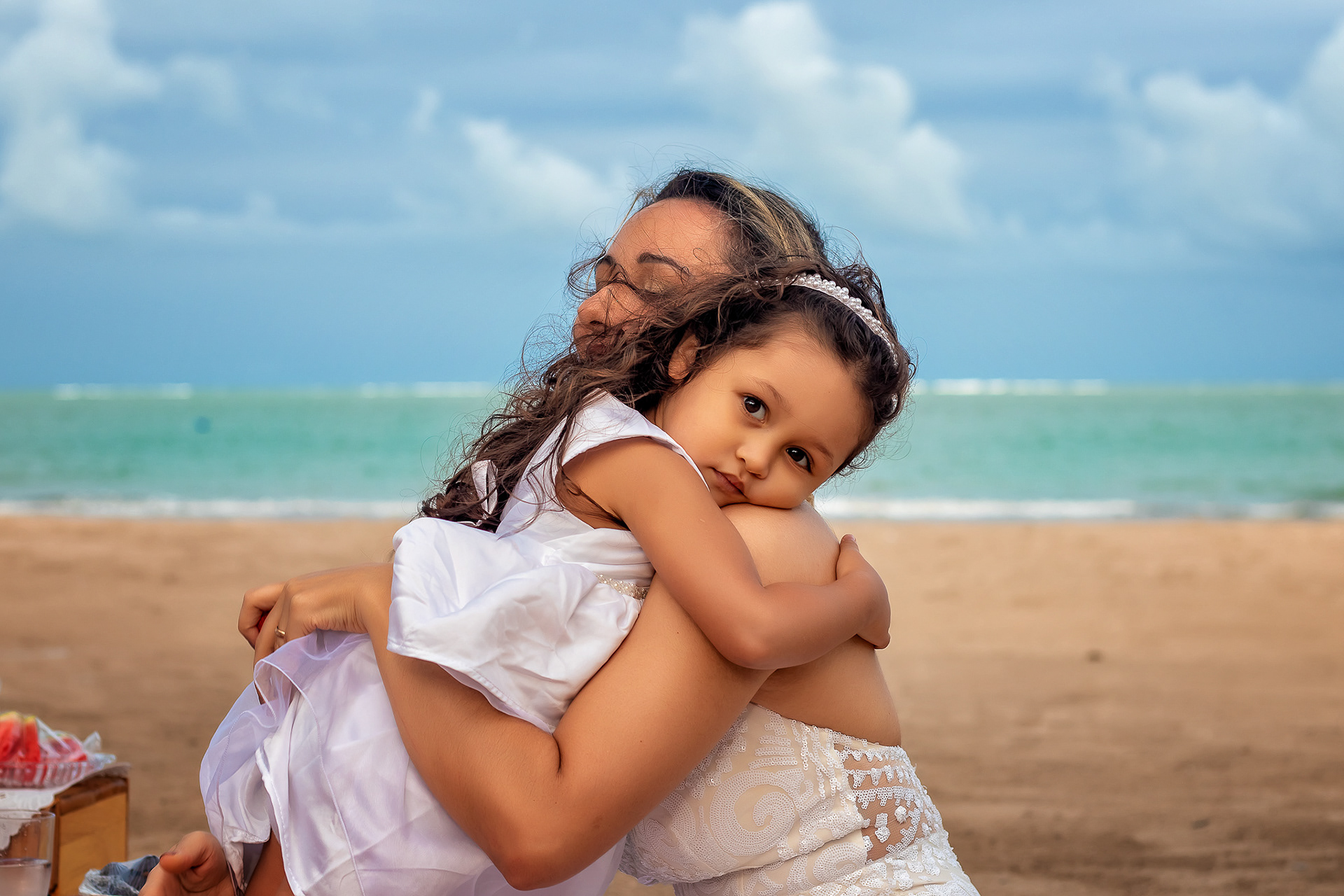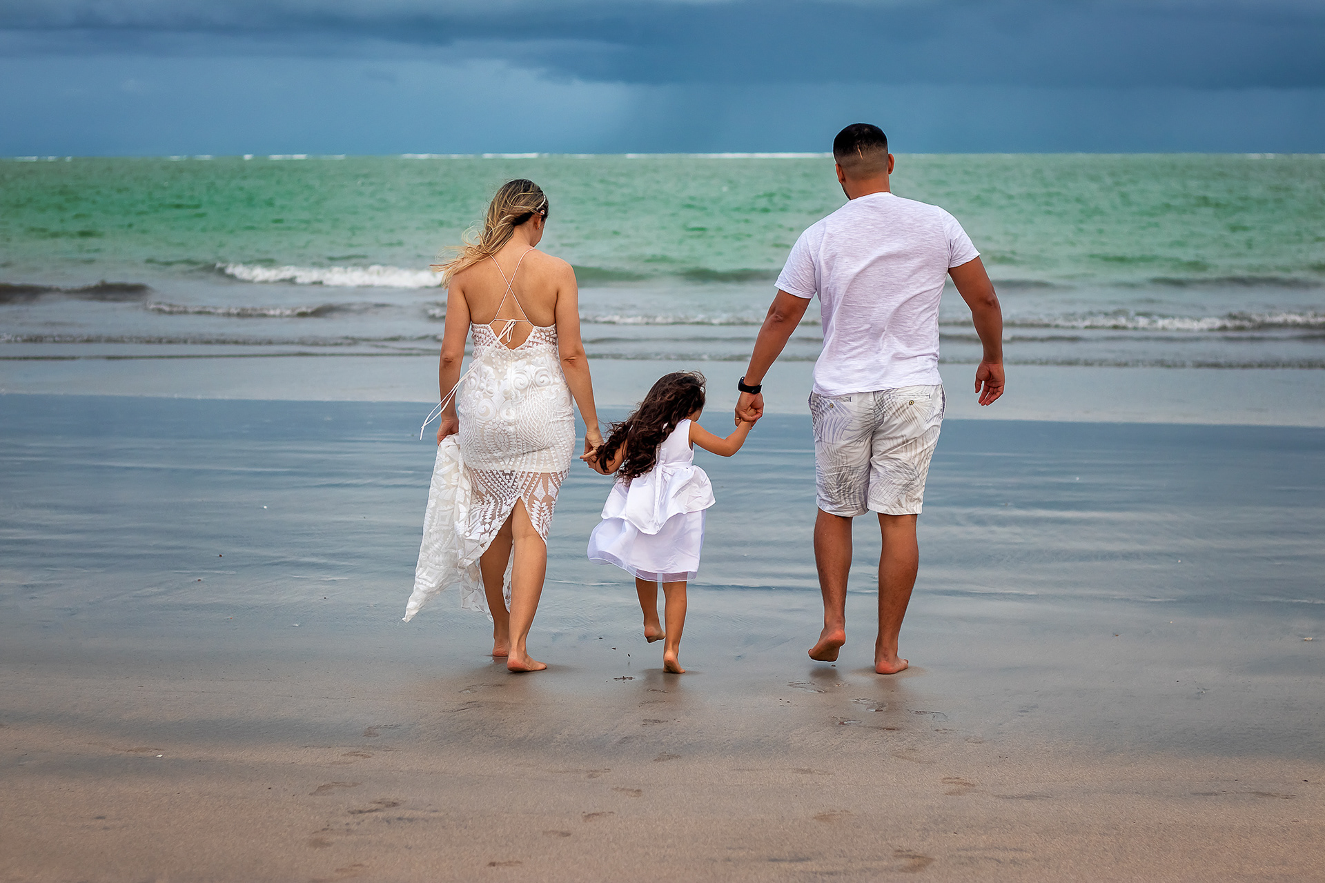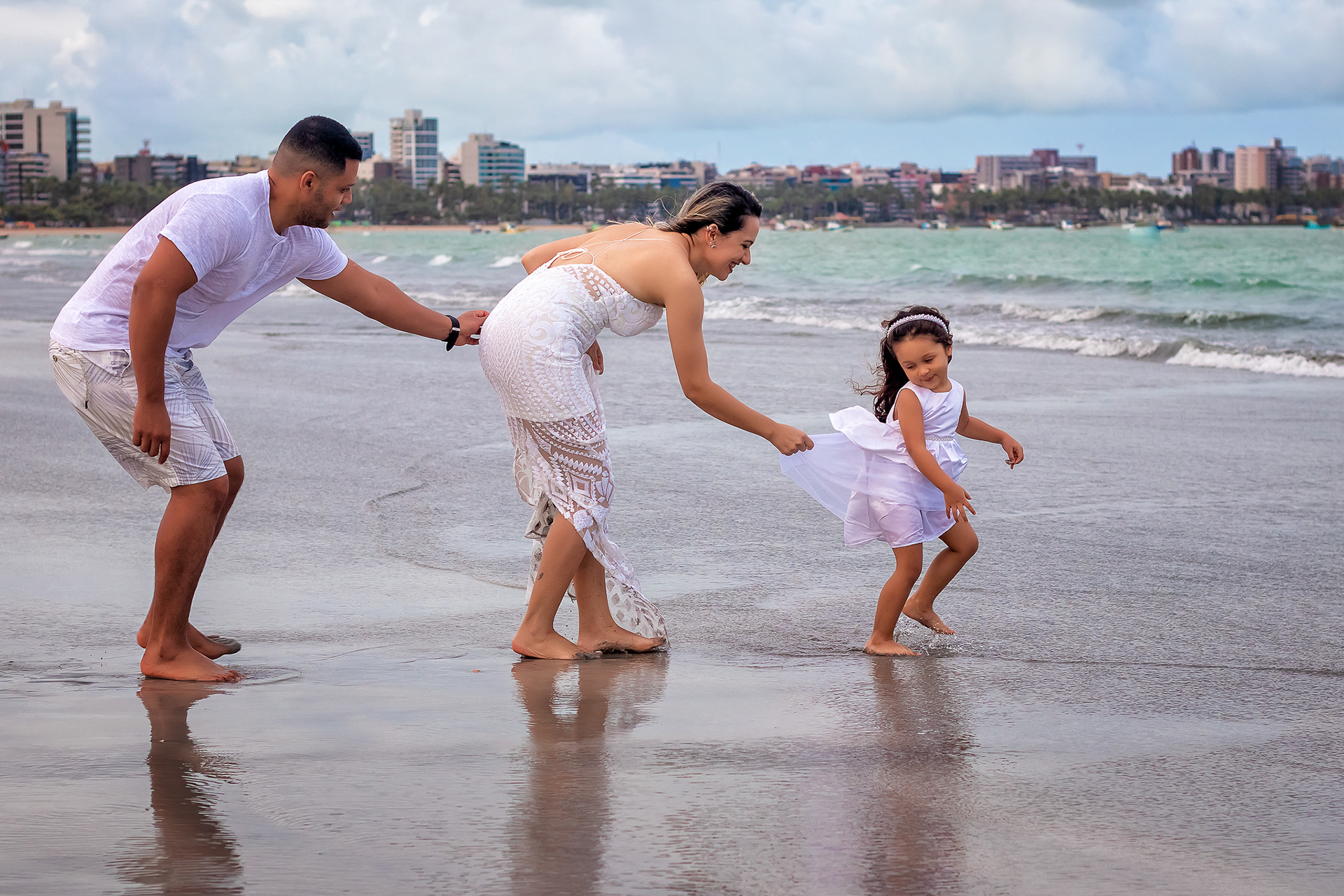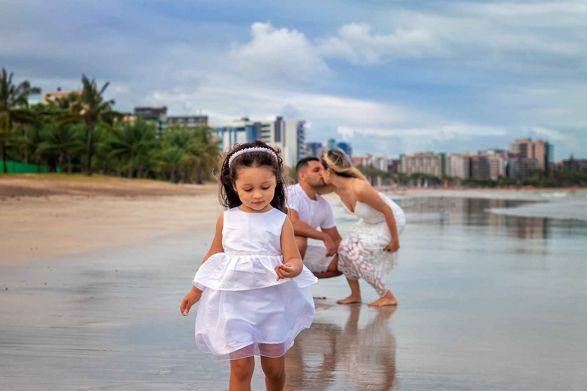 Ensaio fotográfico de família com piquenique romântico para comemorar os 10 anos de casado. Realizado na praia de Pajuçara, em Maceió/AL.